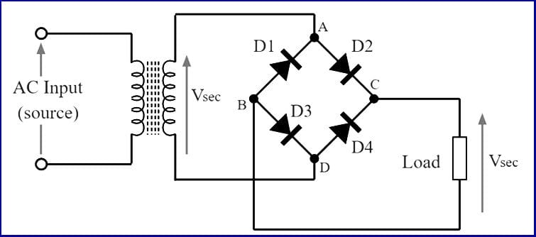 Điện áp xoay chiều đầu vào được chuyển thành điện áp một chiều thông qua bộ chỉnh lưu diode hoặc thyristor.
