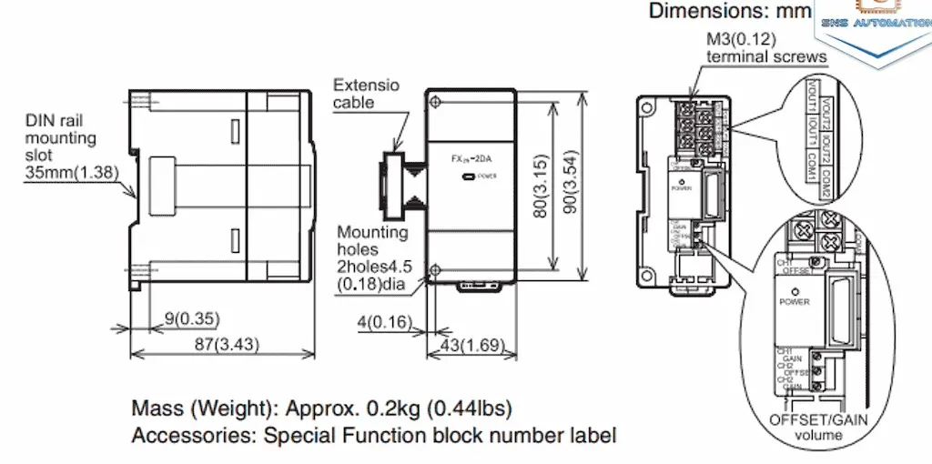 Kích thước mô đun FX2N-2DA