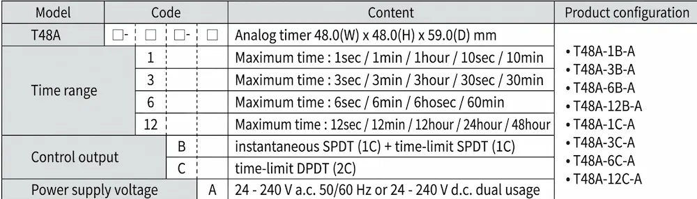 | Dòng sản phẩm | T48A Series (Analog Timer mặt vuông) |